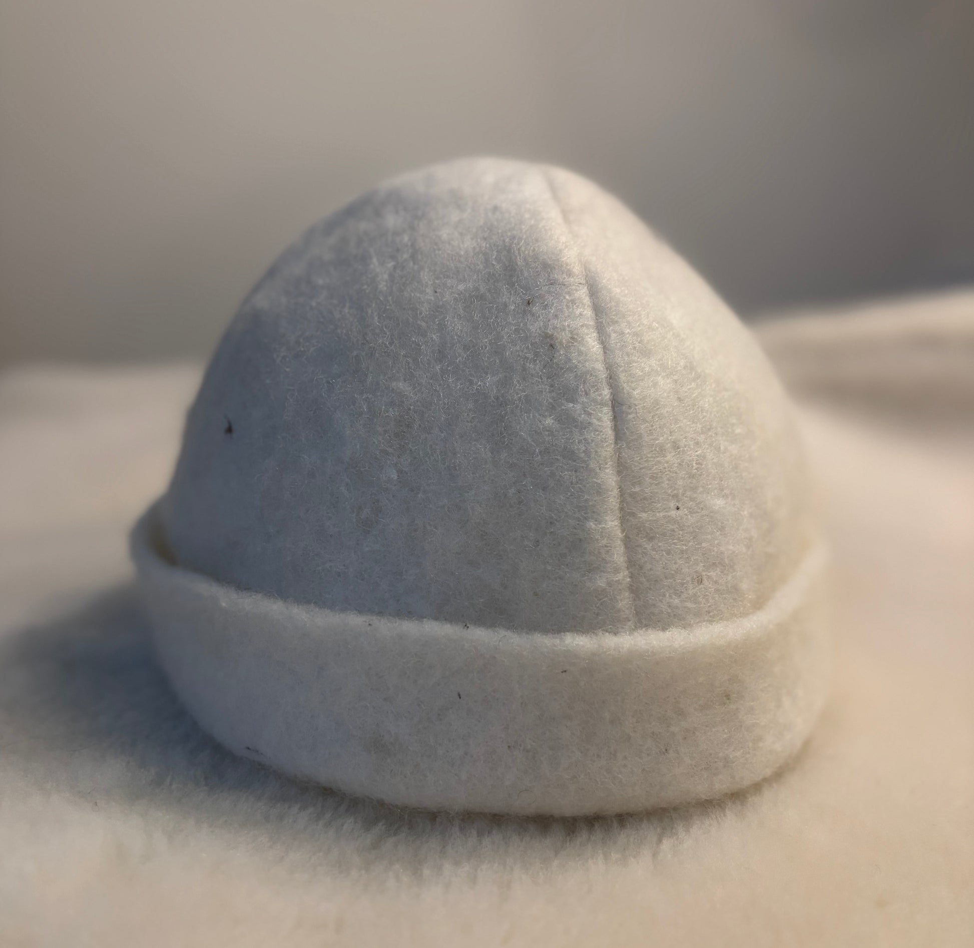 Bærekraftig lue av filt fra 100% norsk løsull i frisk naturhvit - for bading i badstue og isbad.